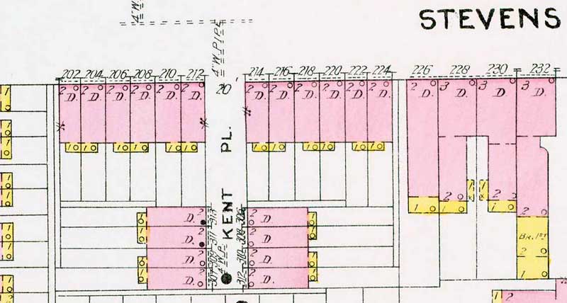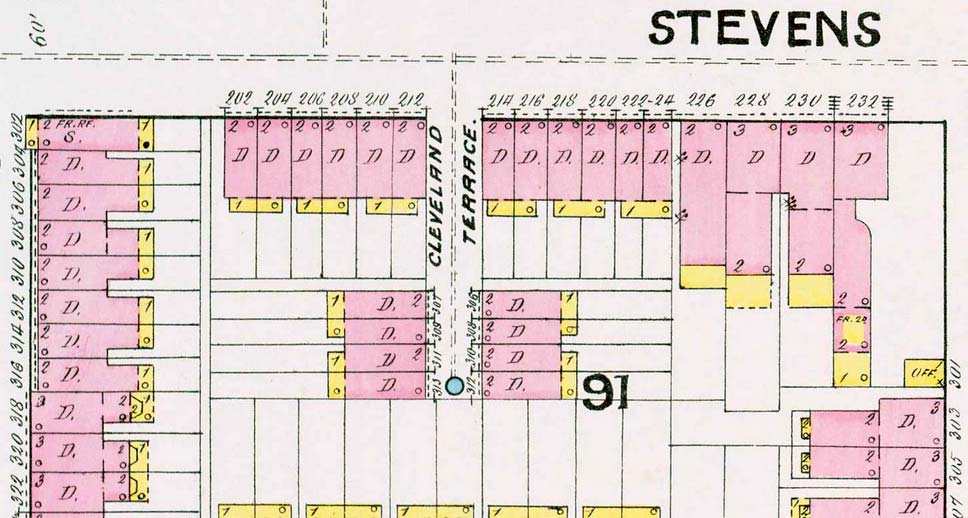 Sanborn Map Note that Cleveland Terrace is here referred to as Kent Place Click on Image to Enlarge |