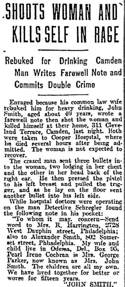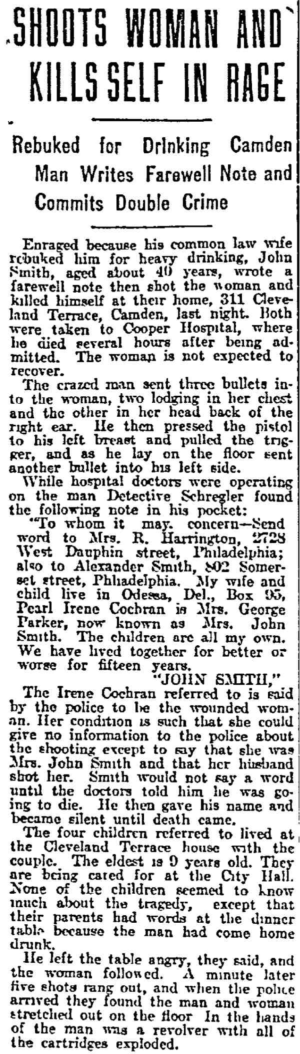 1913 John Smith & Family John Smith & Irene Cochran philadelphia inquirer November 8, 1913 |