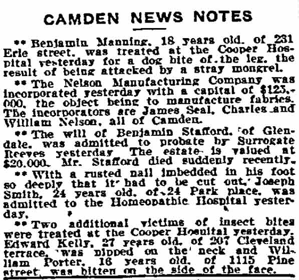 draughtsman, civil engineer 1887-1888 George Dudley shoe cutter 1890-1891 Samuel D. Sears laborer, Pennsylvania Railroad 1890-1891 Stephen Archer laborer, Pennsylvania Railroad