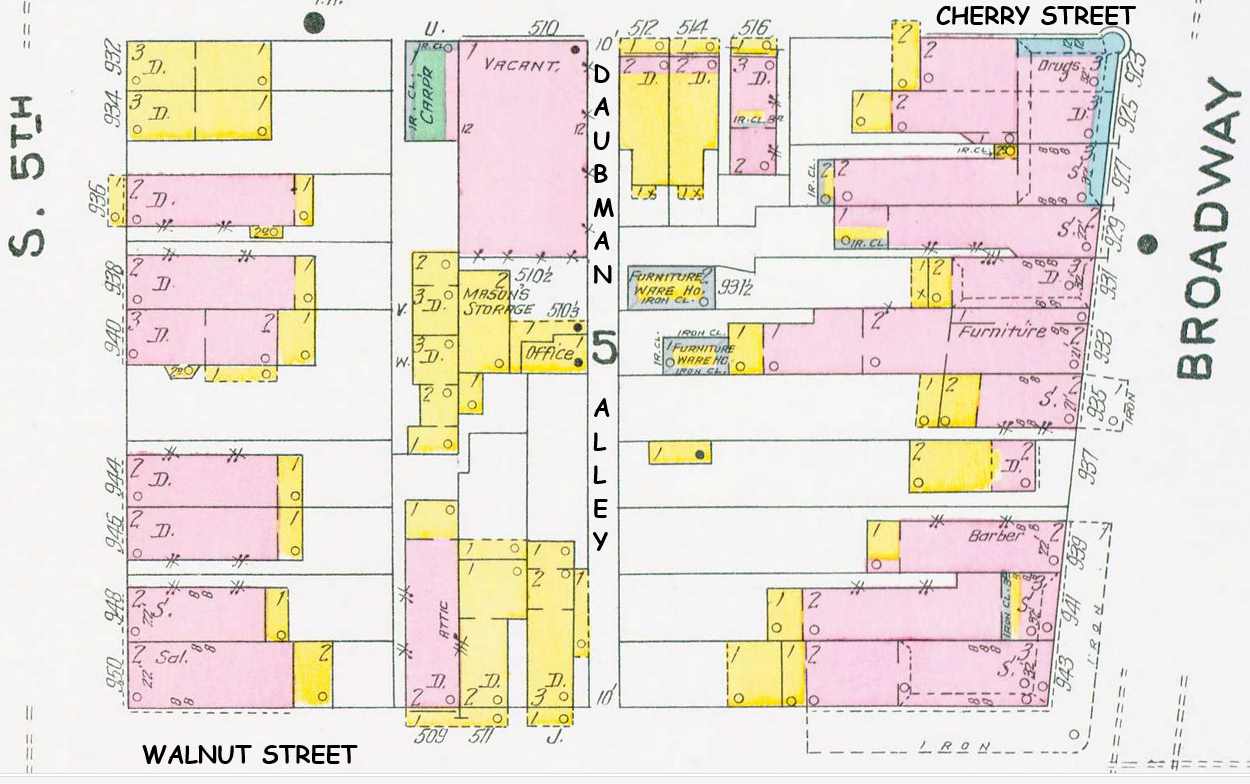 Daubman Alley (After 1947 Coates Alley) - 1906 Sanborn Map |