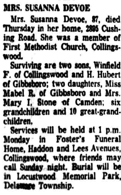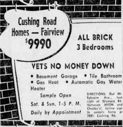 CUSHING ROAD, in the Fairview Section of Camden, runs one block, from Republic Road to hull road, north of North Congress Road. The street does not appear in the 1947 City Directory. Two blocks of row homes were built there in 1954, as well as a block of six on Republic Road. |