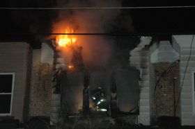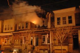www.camdencountyfire.com Tones rang through the quiet and freezing city for a dwelling fire on December 5, 2006 at 2:45 am. Squad 7, Engine 10, Ladders 2, 1, Rescue 1 and Battalion 1 were dispatched to 1222 Dayton Street for a report of a dwelling fire. Battalion 1 arrived to find a 2 story middle of the row dwelling, with heavy fire showing from the 2nd floor. The all hands were struck Battalion 2 and Engine 8 were added to the box.Squad 7 arrived and went in operation with a 1.75” handline. Rescue 1 performed searches; Engine 10 secured a water supply as Ladder 2 through ground ladders. A 2nd 1.75” handline was stretched and placed in operation. At the 10 minute mark the bulk of the fire was knocked down. At the 20 minute mark, Battalion 1 placed the fire under control.The American Red Cross was called to assist the 2 displaced occupants.No firefighter injuries were reported. The fire is under investigation by the Camden City Fire Marshals Office. |