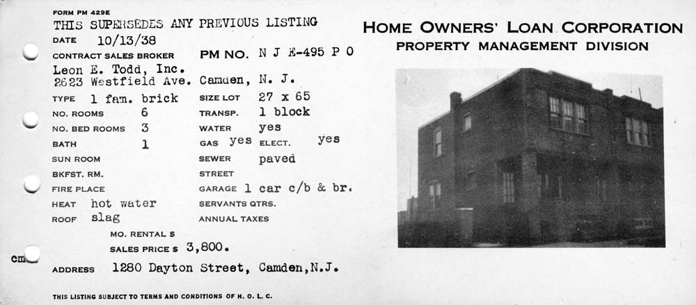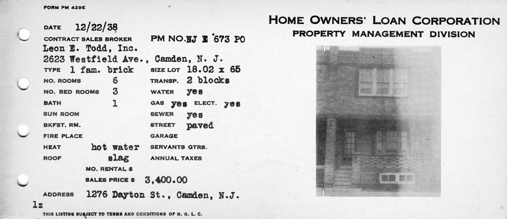 DAYTON STREET runs from Mount Ephraim Avenue to Hallowell Lane, 2 blocks south of Van Hook Street. Dayton Street is named for James B. Dayton, a prominent businessman in 19th Century Camden. Although the street was laid out by 1906, no homes are listed in the 1924 Camden City Directory. By 1929, however, most of the lots on the street had homes erected on them. From its opening in 1946 until its closing in 1979 St. Joseph High School occupied the building that stands on Mount Ephraim Avenue between Decatur Street and Dayton Street. When it closed, the Diocese of Camden left the building unoccupied and unsecured for well over a decade, allowing it to become a haven for drug users and prostitutes. The neighborhood was severely impacted, needless to say. The building was finally sold in the 1990s and turned into a nursing home, primarily catering to indigent patients. |
