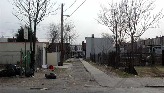 Looking West on Evans Street from South 4th Street - March 14, 2004 | |