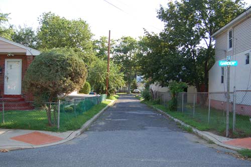 EVA STREET in East Camden runs from 317 Garden Avenue to Hillside Avenue. It is a one block thoroughfare that, with its "sister" Ella Street serves to provide a way for cars to turn around on the one way streets that they connect to, between Fremont Avenue and Waldorf Street. Sections of Royden and Berkley Streets serve a similar purpose. There are no homes or businesses with an Ella Street address. Ella and Eva Streets do not appear in the 1914 City Directory or on a map published that year, but are listed in the 1924 Camden City Directory. |