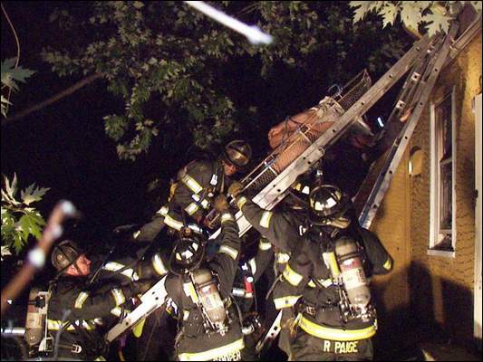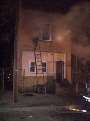Ladder 2 on Broadway at Everett Street. The Ebony Showplace nightclub had been an A&P Grocery Store before being converted into a nightclub in the late 1970s. Click on Image to Enlarge