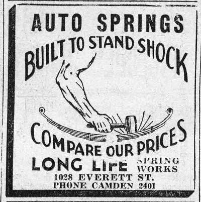 EVERETT STREET Camden runs from Fourth Street east to Haddon Avenue, interrupted between South Sixth Street and South Ninth Streets, and again at Pershing Street, between Lansdowne Avenue and Jackson Street. Best known as a residential street, Everett Street was also the home of the Liberty Bottling Works warehouse, Camden Auto Spring Company, and, at the intersection of Broadway and Everett, a baseball field where many of the best teams in Camden and traveling professional teams came to play.