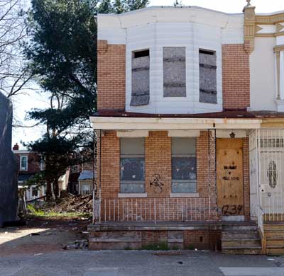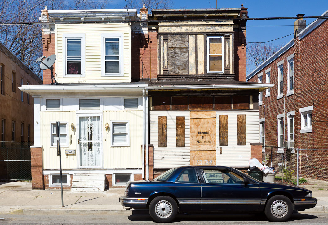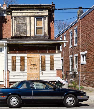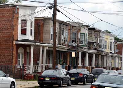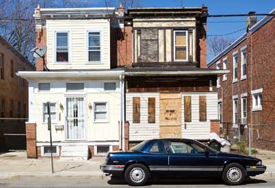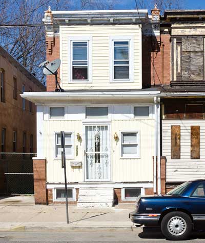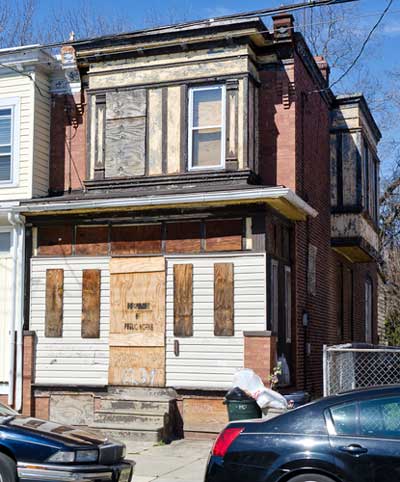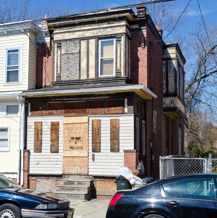 Most of the homes on the north side of Everett Street were razed in the 1990s to provide parking for West Jersey Hospital. |