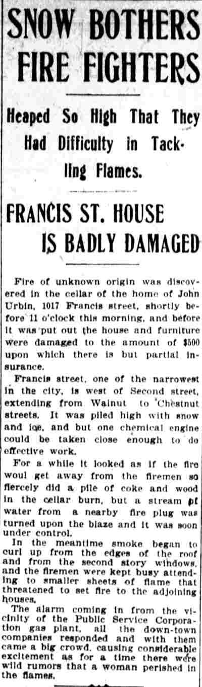 FRANCIS STREET ran two block from 126 Walnut Street to 135 Chestnut Street, between Front and South 2nd Streets. It was laid out between 1878 and 1887. The land bounded by Walnut, Chestnut, South 2nd, and Front Streets was consolidated after World War II for industrial development. Francis Street, and Ivins Street, a small street that ran between Mt. Vernon Street and Chestnut Street, were erased. |