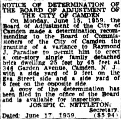 346 Garden Avenue 1959 Camden Courier-Post Joseph C. Nettleton