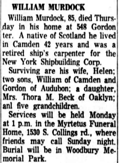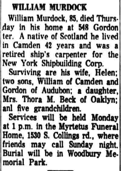 1927-1963 Camden Courier-Post I remember running up and down the ally in back of the houses when I would visit my Grandmother. We would also go over and talk to the Train Guy at the RR tracks too. My Grandfather, Uncle and Dad all worked at New York Ship. It was sad seeing what happened to that neighborhood. I remember reading in the Courier-Post one time that a drug dealer wanted to buy all the streets there to run his business. He even had the guts to go to a planning board meeting. -Barbara A. Murdoch, May 2018
