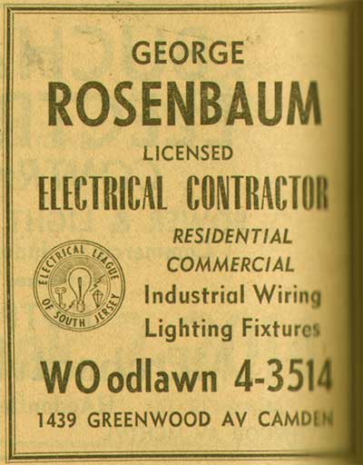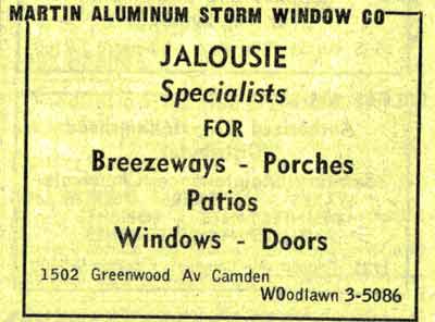 GREENWOOD AVENUE is in Camden's Parkside neighborhood. It runs from 1402 Bradley Avenue for two blocks southeast to Vesper Boulevard, parallel to Park Boulevard. The 1500 block of of Greenwood lays between Our Lady of Lourdes Hospital, Harleigh Cemetery, the Camden High School athletic fields, and the Camden County Historical Society buildings. Greenwood Avenue does not appear in the 1924 Camden City Directory. When the 1947 Directory was compiled, there were only six homes occupied on Greenwood Avenue, in the 1400 block. Within a few years, however, a series of brick row homes were built all the way to Vesper Boulevard. |