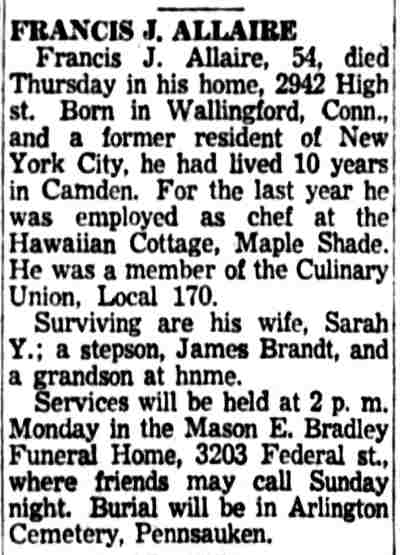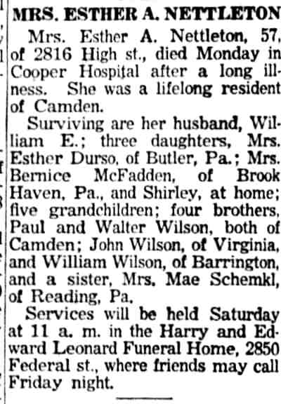 2043 High Street 1933 Florence Taylor Camden Courier-Post |