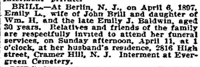 2610 High Street 1937 Fell from City Parks truck on March 17, 1937. Died from injuries on April 22, 1937 and was buried at New Camden Cemetery. |