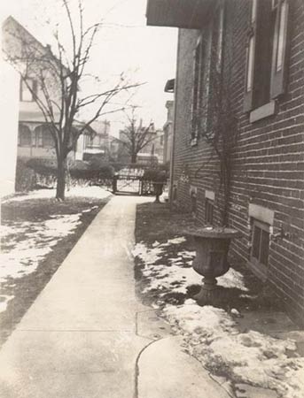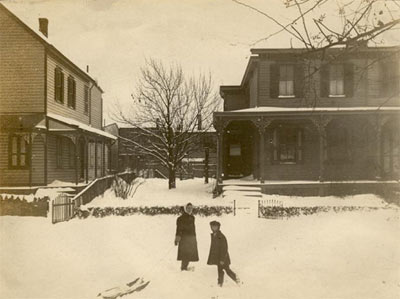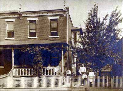 2919 High Street 1890s-1940s This was taken a few years later. Note the hedge not in the above photo. From the hair style the young woman at the gate has, I'm guessing before World War I. Click on Image to Enlarge |