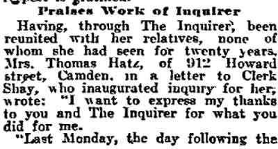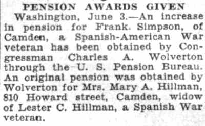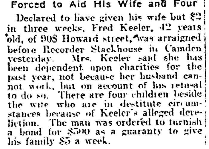 HELD IN THREAT AS WOMAN FAINTS Landlord, Seeking Rent, Denies He Intended to Shoot Tenant Residents along the 900 block on Howard Street were thrown into a turmoil at 9:15 a.m. yesterday by a reported shooting, after a woman, screaming for help, ran from her home and fainted on the street. The police arrested Charles Bensley, 73, of 936 Howard Street, charged with threatening to kill Mrs. Anna Morgan, 55, of 934 Howard Street, and carrying concealed deadly weapons. A few minutes later Police Judge Pancoast held Bensley without bail for the grand jury. He admitted having the pistol at the hearing, but. had denied possession of the weapon when first arrested. "Were you going to shoot her?" the court asked. "No,“ Bensley replied, "I don't know what made me do this, I think I'm half-crazy. I own the house and wanted to collect the rent or make her move." When Motorcycle Patrolmen Russell Young and George Getley arrived in front of Bensley's home, 100 neighbors were crowding the street outside. Bensley, they said, eluded them and ran out the front door after pretending to make for the back. He was grabbed by August Hasher, 41, of 217 Erie street, a bystander. Meanwhile, a motorist had taken the unconscious Mrs. Morgan to Cooper Hospital when she fainted in front of. her home. She was questioned at the hospital by Detectives Clifford Del Rossi and George Zeitz. The detectives quoted Mrs. Morgan all saying that Bensley, who owns the house in which she lives, came into her home this morning to talk about rent which was two months overdue. "He asked me," she said, "if I had received a court notice to move, and I said I had, but was waiting for an eviction notice. "Then he said, 'Well, I'm going to take the law in my own hands', and with that he pulled out a pistol and began brandishing it. I ran out the front door calling for help and then I fainted. That‘s all I remember." Bensley admitted asking Mrs. Morgan to move out. The police found a 38-caliber revolver and a box of bullets hidden behind a rafter in the cellar of his home, they said. |