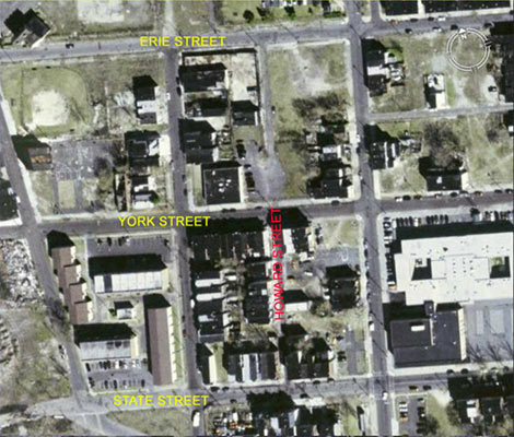 Looking South towards York Street from Erie Street - April 1, 2004 | |