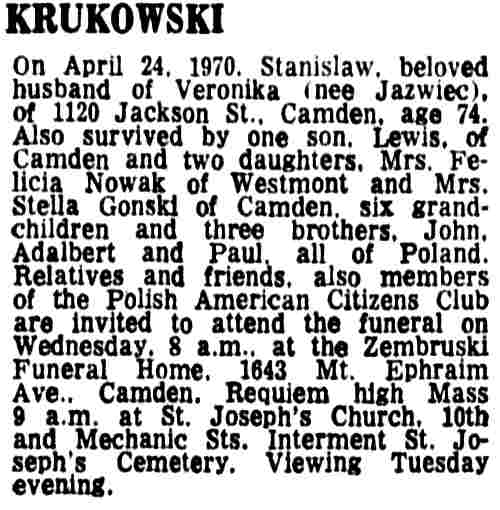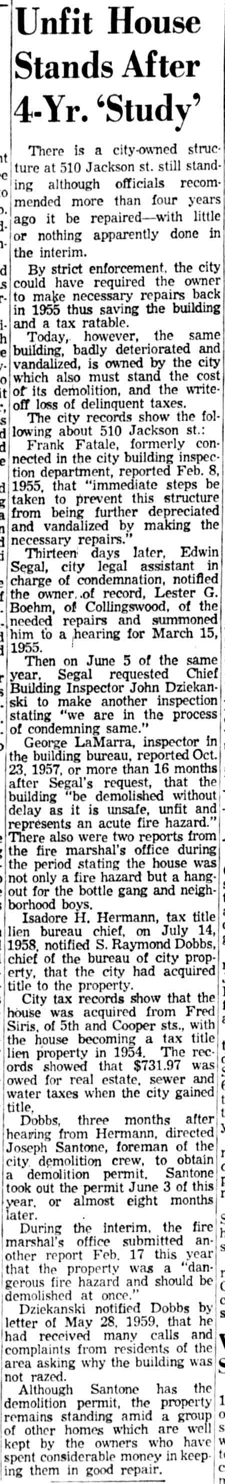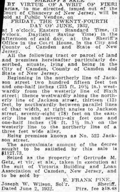 1359 Jackson Street 1933 Edward WIsniewski Camden Courier-Post |