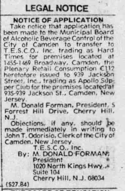 1960s-1982 Destroyed by Fire August 14, 1982 Camden Cuorier-Post