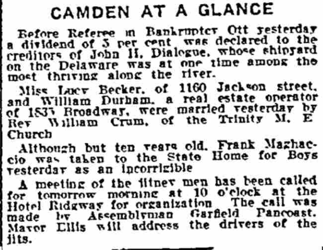 1921-1927 Camden Daily Courier Charlie Gardner |