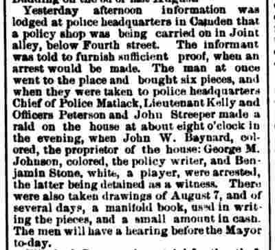 I walked down Joint Alley as a youth thousands of times. It was about one block from our barber shop. It was a small alley street running from 3rd to 4th Street between cherry and Spruce. It has a very interesting history and was the residence of a popular Camden figure- Johnny Carroll- who rented horses and wagons to Camden City before Camden had its own fleet. He also had a beautiful tavern, for its time, and some beautiful girls, as I am told by my brothers. Where the red building is used to be a candy store owned by Mr. Abbott. Most children would stop there on their way to school in the morning and after lunch for one-penny candy. The gray building across the alley on the right is where Mr. Carroll had his saloon & stables. Enrico
