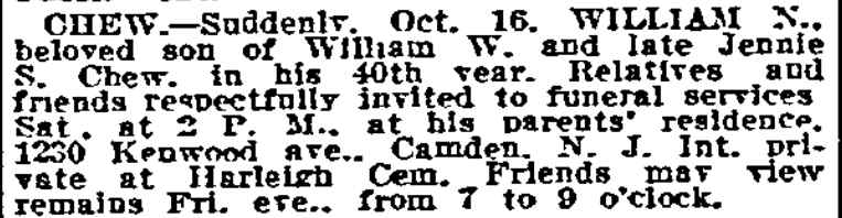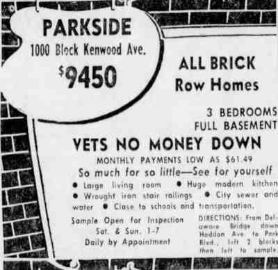 KENWOOD AVENUE is in Parkside, running south from Walnut Street to Euclid Avenue, two streets east of Haddon Avenue. Homes were built in the 1100, 1200, 1300, and 1400 blocks prior to 1920. The homes in the 1000 block were built in the mid-1950s. |