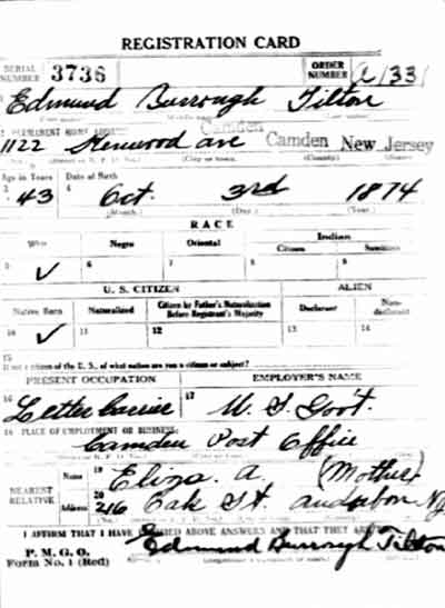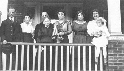 July 4, 1916 or 1917 or 1918 Edmund Sr, his sister Bessie, man and woman (possibly their parents), 2 unknown women, Lucy Tilton and unknown child. Edmund Tilton Jr. was born July 19, 1918. |