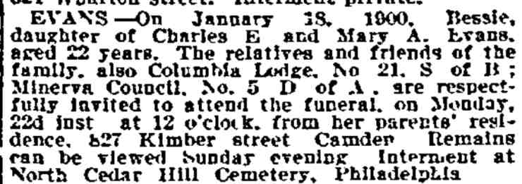 840 Kimber St.. Camden, N. J,, age 69 years. |