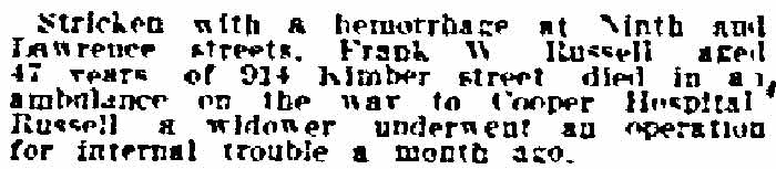 1915 Frank Russell Philadelphia Inquirer Dr. S.G. Bushey |