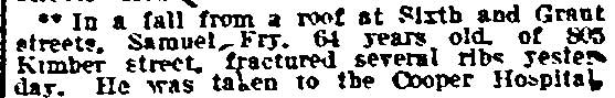 1947 Clarence F. Akins Camden Courier-Post 2011 Gone |