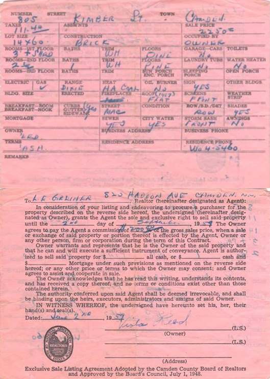 1947 These photos are of my mom, Dorothy Reed, daughter of Nelson Reed & Viola Smith, and my mom's boyfriend at the time, Charles "Charlie" Wiltsey. My mother's family lived first at 723 Cedar, Camden where my mom was born, and then at 805 Kimber Street, Camden, NJ. 805 Kimber was listed with a realtor for sale in June of 1959