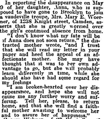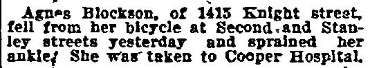 1415 Knight Street 1900 Agnes Blocksom (Bloxom) Philadelphia InquirerAugust 7, 1900 Click on Image for PDF