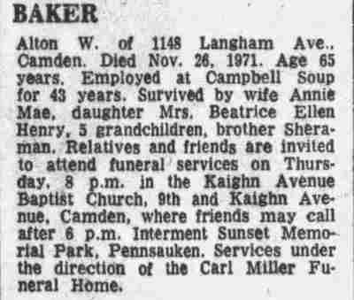 1940s--1950s My mother lived at this address in high school, and I just came across a listing of her graduation, in a Temple University yearbook, class of 1950: IRENE RUDOLPH 1009 Langham Avenue Camden, N. J. ACCOUNTING Honorary Accounting Society 3, 4; Beta Gamma Sigma 4; Day Dodgers 2. The family was mixed Jewish/Polish Catholic, and had moved from 1339 Van Hook Street. Pat Snyder |