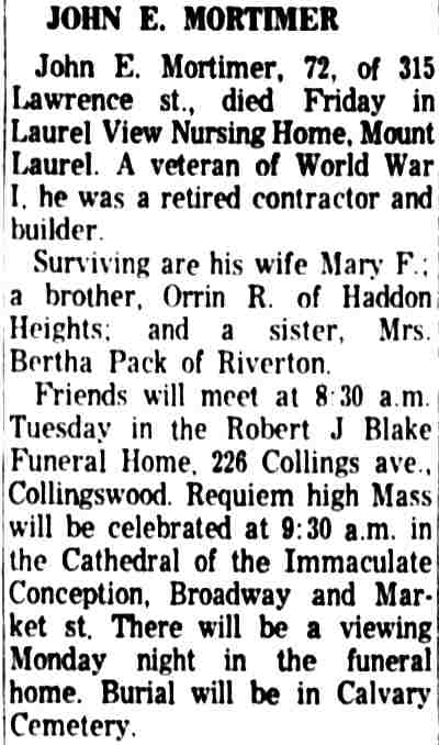 1918 Philadelphia Inquirer Dr. William H. Pratt |