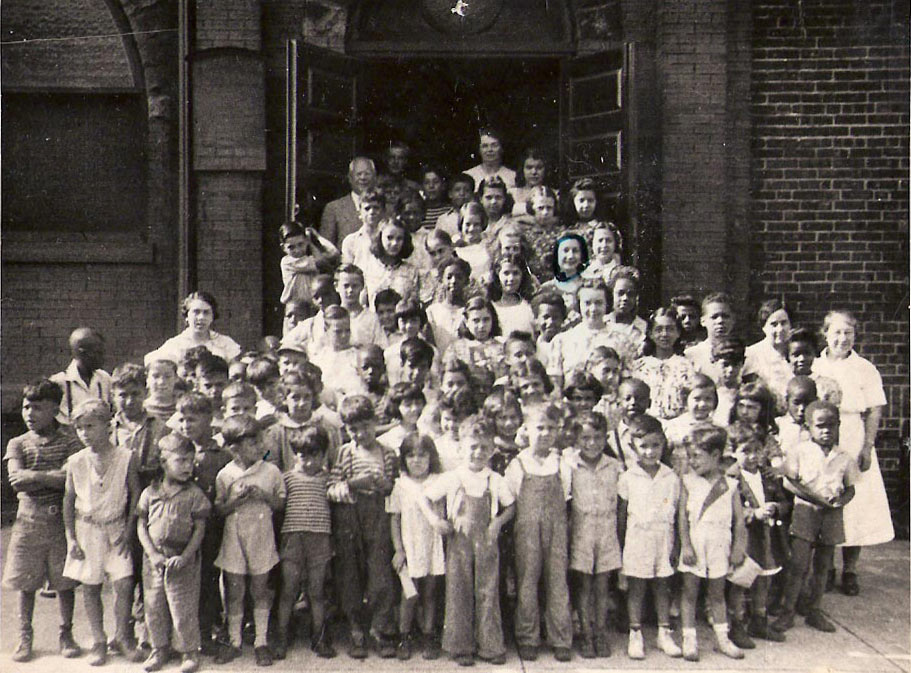 First Italian Baptist Church Standing 4th from left in front row is me, Mike Coccia. The girl standing with the circle around her face is my sister Faust Coccia Spallina. Standing a little to her right a little below is my sister Angelina Coccia Gramenzi (with dark hair). Standing on the extreme right is the church nurse-Mrs Bass. Standing in the rear at the top of the steps is Miss Hatch- Missionary. The gentleman standing in the rear is Reverend Horton- Mike Coccia, December 2008 Click on Image to Enlarge |