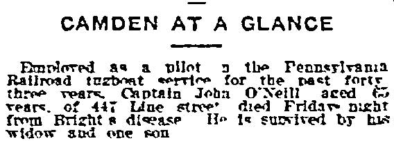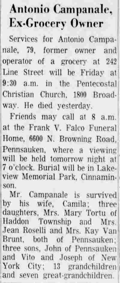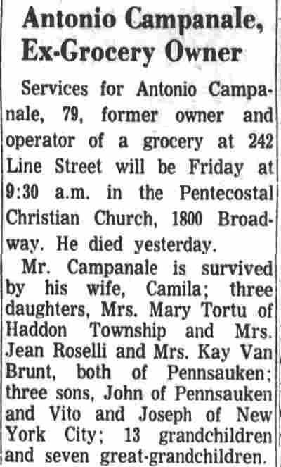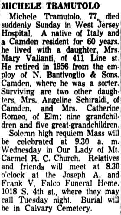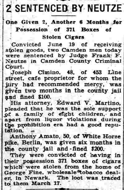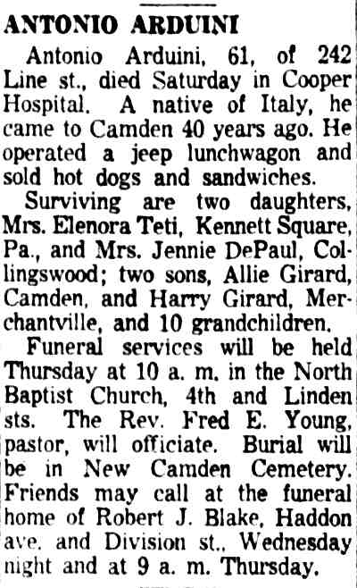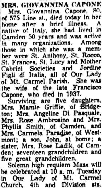 1919 Camden Post-Telegran Click on Image to Read the Entire Article 1947 Saturno Giorgi |