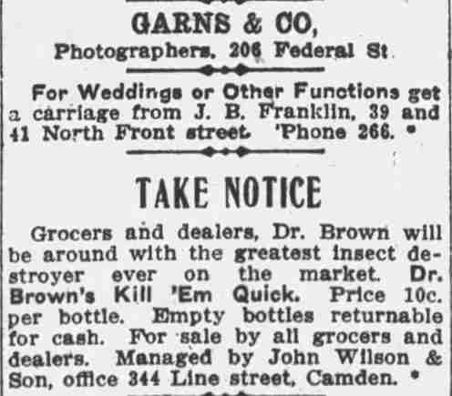 Street Mrs. Alma Johnson Boarding house 1920s Camden Courier-Post |