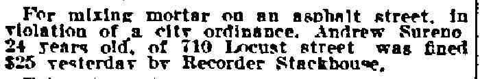 Judge Dzick fined two men $10 each for assault and battery. Fined were John Tubman, 635 Locust Street, and James Jones, 238 Chestnut Street. |