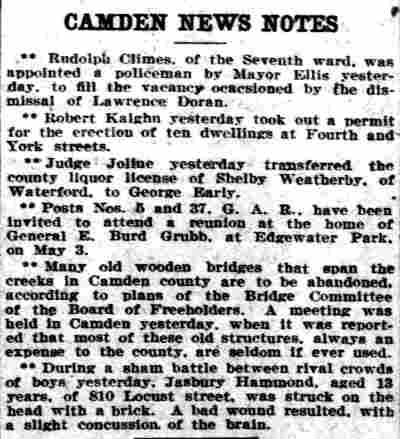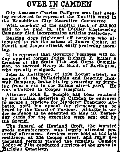 1895 John L. Lattimore Philadelphia Inquirer Francisco Abbatto Camden