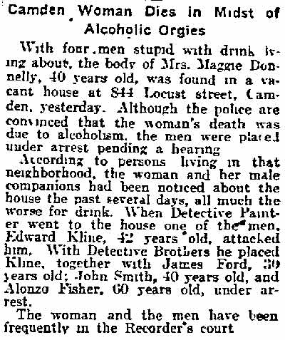 1913 Frank E. Connelly Camden Daily Courier Jennie Wilhelm - Mechanic Street |