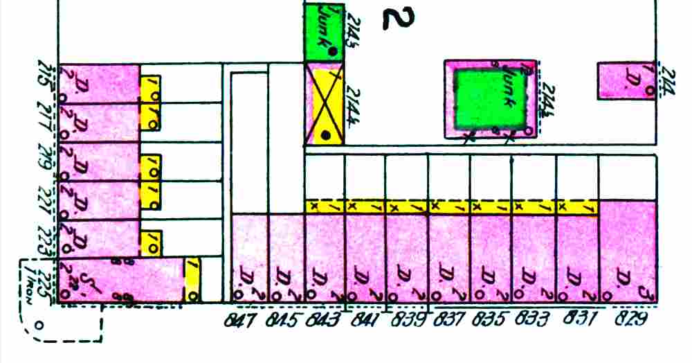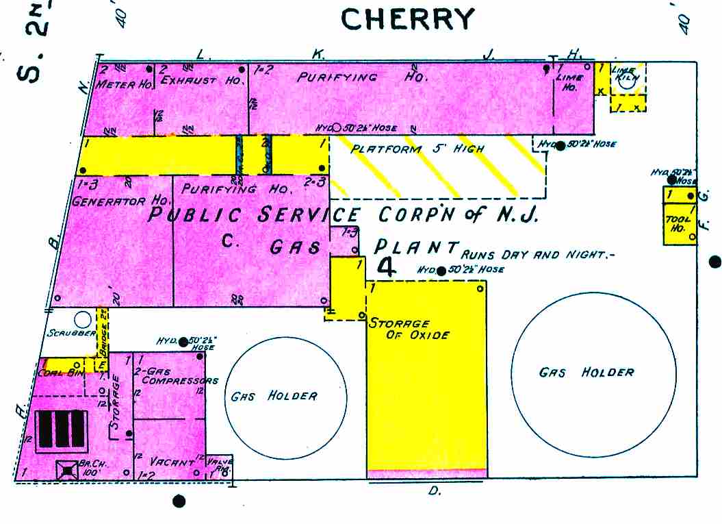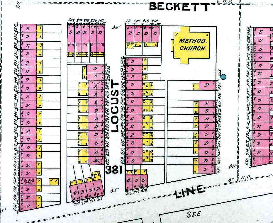 LOCUST STREET originally ran south from Beckett Street for one block as far south as Mechanic Street, between South 2nd Street and South 3rd Street. The street is listed in the 1867 Camden City Directory. The 600 block was known as John Street in the 1870s, and the 700 block of Locust Street was known as Oak Street until about 1883. An industrial building and parking lot built in the latter half of the 20th century shortened Locust Street, which now runs from Pine Street south to Mechanic. For several decades there were many homes and businesses along Locust Street. However, several years after World War II the City of Camden decided that all development west of South 3rd Street would be industrial, and block by block, the homes and businesses… and in fact, entire streets… disappeared. The last standing structure on Locust Street, an abandoned home at 1128 Locust, between Chestnut and Sycamore Streets, was razed after a fire in September of 2010. Today, Locust Street is a street where literally nothing is. |