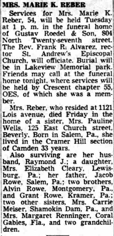 1115 Lois Avenue 1947 William C. Schnabel 1956 Raymond J. Reber Camden Courier-Post |