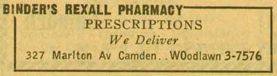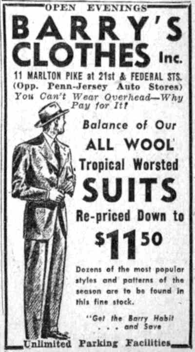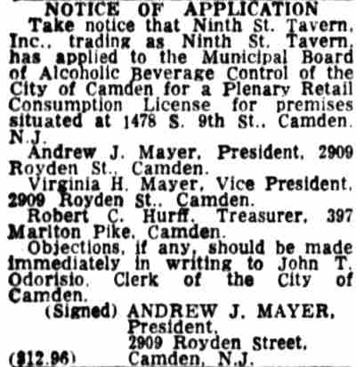 1947 No Listing Camden Courier-Post Ninth Street Tavern |