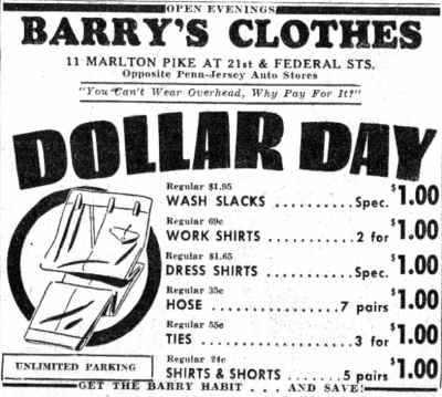 1947 W&W Plating 1955 Marlton Army & Navy Store Co. 1969 Tire Sales& Service 1970s-1980s Kentucky Fried Chicken |
