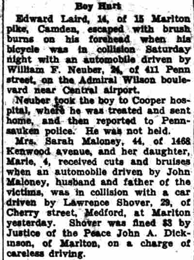 1947 No Listing Camden Courier-Post Joseph Kane |