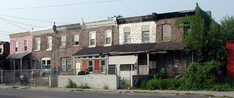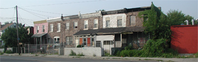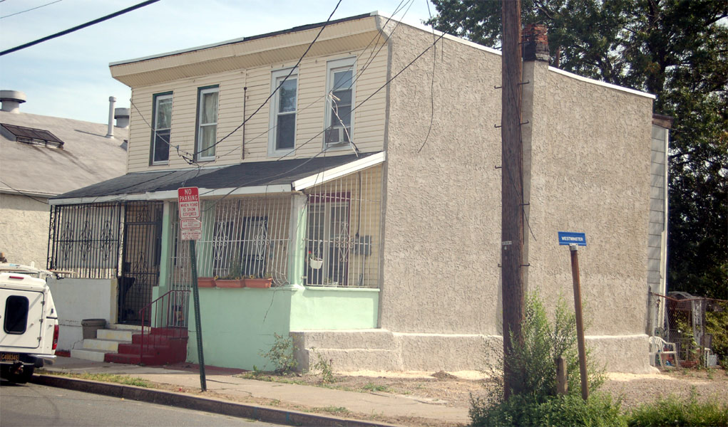 Looking Southwest from Federal Street July 2004 The twin frame and all the houses to the right of the were razed around 2006 to make room for the new Thomas Dudley Elementary School which opened in September of 2009. |