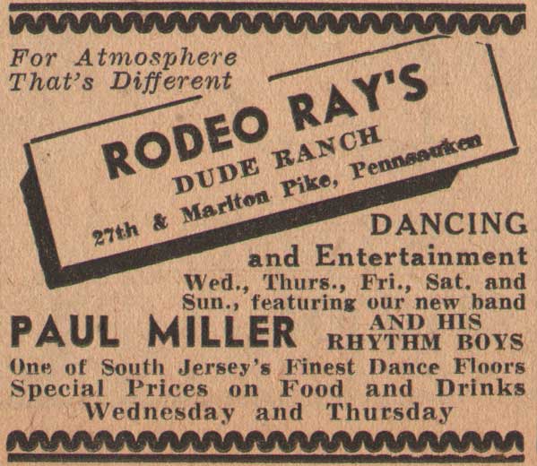 1936-1938 Rodeo Ray's Dude Ranch Camden Courier-Post Paul Miller & his Rhythm Boys |