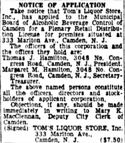 1947 No Listing Camden Courier-Post Thomas J. Hamilton |