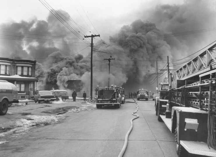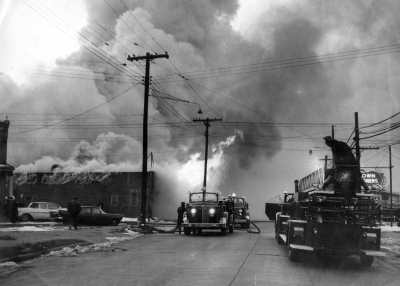 Marlton Pike Curt Hudson Video April 17, 2009. Companies were dispatched to a building fire at the Dollar Store and Marlton Ave. and Benson St. First companies in reported heavy smoke from a strip of stores. The battalion chief hit a second alarm and then a third within just a few more minutes. The Dollar Store was becoming well-involved and smoke was showing from the entire row of the one-story building, about 200 feet long. It took about three hours to get the fire under control, but the entire building was destroyed. Two firefighters and a police officer suffered smoke inhalation. This video starts about 15 minutes into the job. All firefighters had been ordered out of the building by this time due to rapidly deteriorating conditons. Please watch in full-screen mode… |