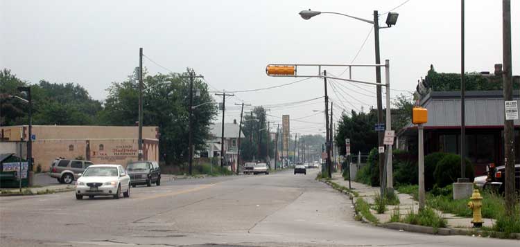 MARLTON AVENUE begins at Federal Street, and is for all practical intents and purposes an extension of State Street, which runs east from the Delaware River, across the Cooper River and the Pavonia railroad yards to Federal Street. Marlton Avenue continues eastwards to the city limits at Highland Avenue. Marlton Avenue is one of the five major streets in East Camden, the others being Westfield Avenue, Twenty-Seventh Street, Baird Boulevard, and of course Federal Street. The intersection of Marlton Avenue and Federal Street has over the decades been quite prominent. Various businesses have located there, including a saloon, a car dealership, a 7-11 convenience store, a fast-food restaurant, and a laundromat. In 2009 a new elementary school, the Thomas H. Dudley School, was erected on the southeast corner. This school replaces the school which bore the same name and which was located on North 23rd Street between High Street and Federal Street. |